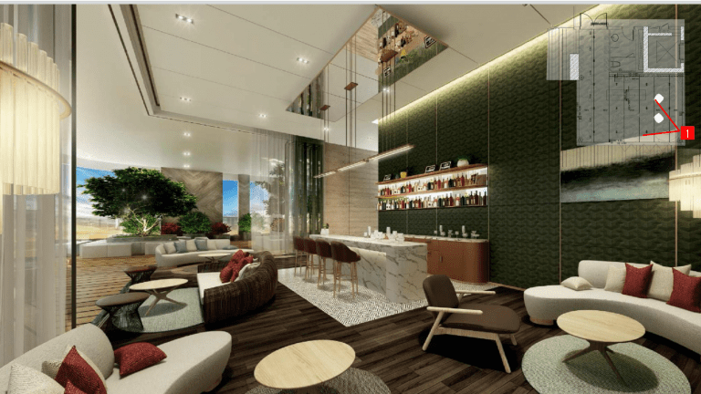 Và việc nằm gần sông Sài Gòn và lõi khu đô thị Thủ Thiêm, nơi được quy hoạch mật độ cây xanh và mặt nước lớn mang đến không gian sống trong lành, tươi mát cho cư dân.