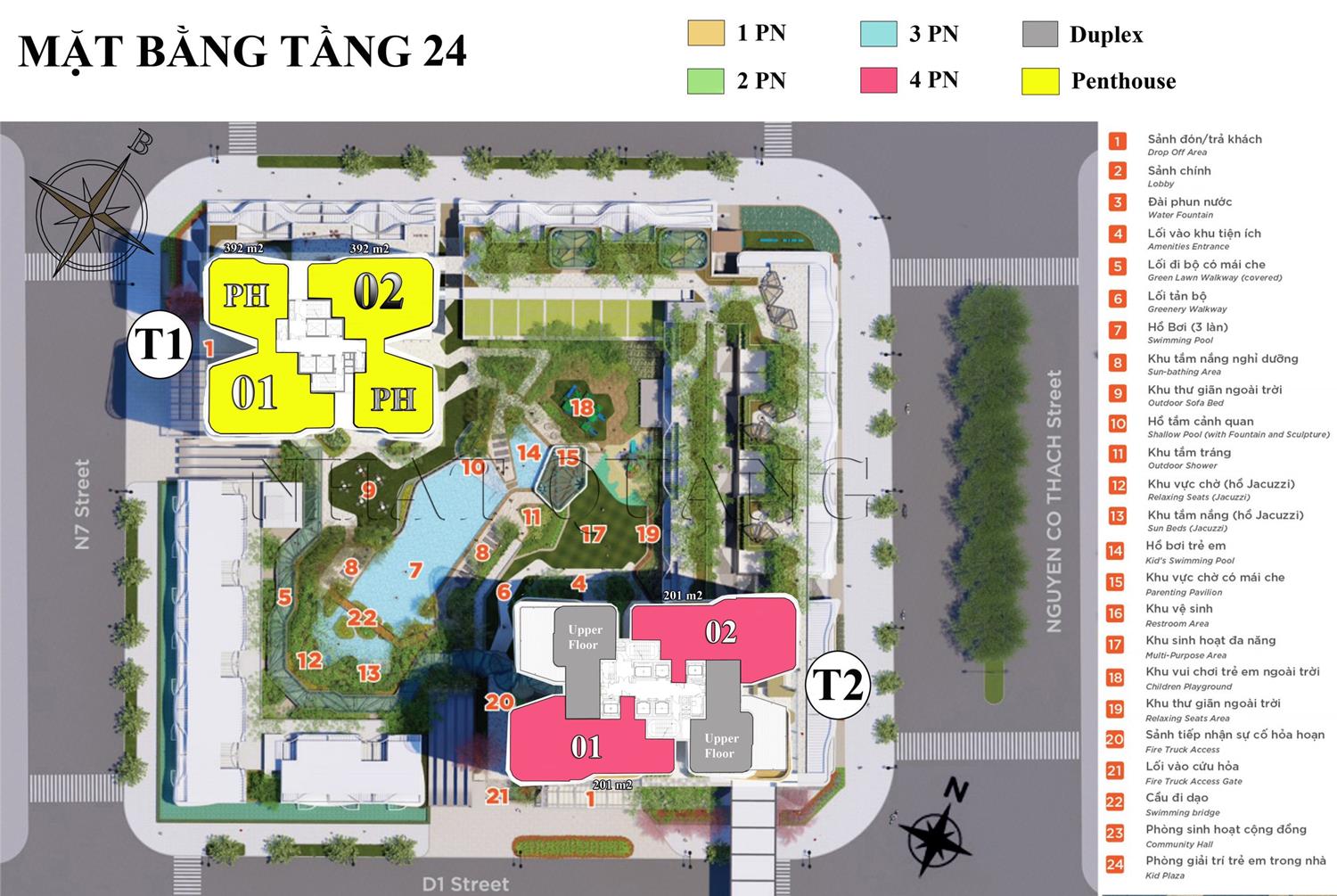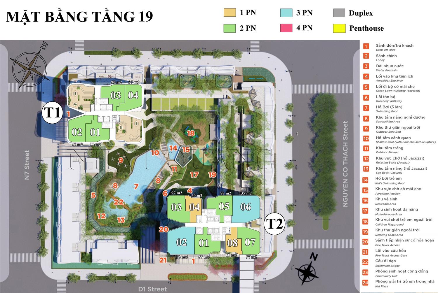 Dự án Thủ Thiêm Zeit River có đa các loại căn hộ từ 1PN – 4PN, Duplex và Penthouse với diện tích từ 60m2 – 390m2. Số lượng chi tiết từng loại căn hộ như sau: