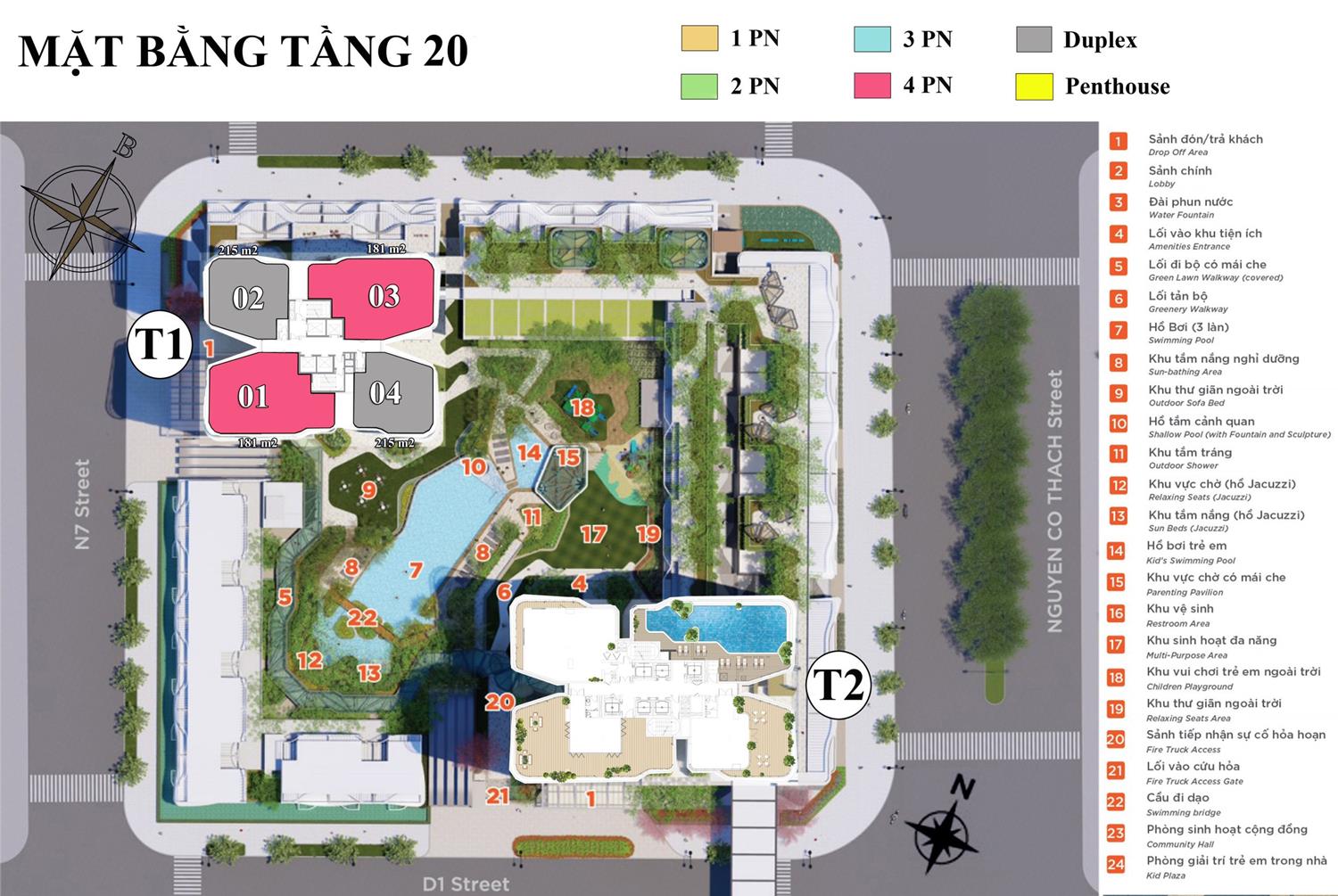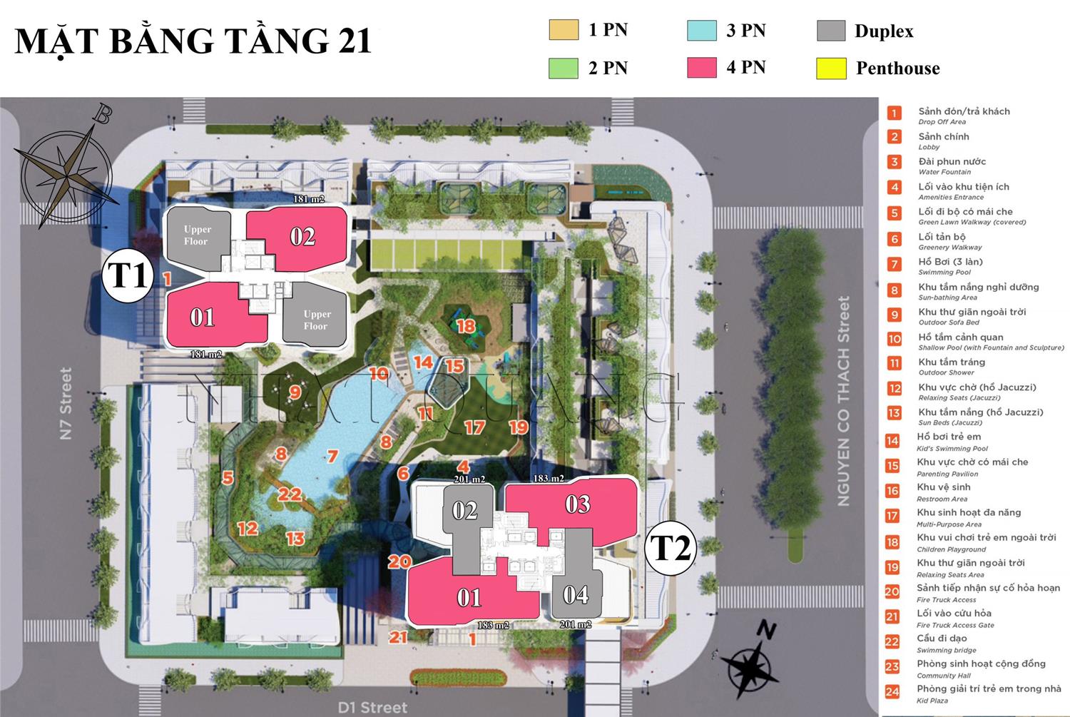 Mật độ xây dựng rất thấp, mỗi sản chỉ có từ 4 – 8 căn nhưng có đến 4 thang máy. Đảm bảo an ninh và di chuyển thuận lợi cho cư dân.